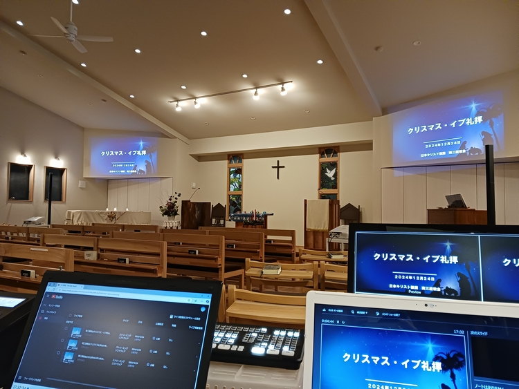 2024年12月24日 / 最終更新日 : 2024年12月29日 mnmmtk クリスマス・イブ礼拝 クリスマス・イブ礼拝が本日午後6:30に行われました。 クリスマス・イブ礼拝用に装いを整えました。 礼拝ではクリスマスキャンドルが灯されました。