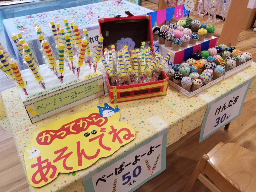 2022年11月3日 / 最終更新日 : 2022年11月3日 mnmmtk バザー開催されました お天気に恵まれてバザーがおこなわれました。コロナ禍のため在園児、日曜学校生徒、教会員の参加者限定の小規模&時間短縮開催でしたが、楽しい2時間を過ごすことができました。 園庭のようすです。 手前)ケニアにあるコイノニア教育センターのソーイング・プロジェクト奥)フェアトレード支援コーナー 園児制作のエントランス・タワー 幼稚園の子どもたちに大人気のおもちゃコーナーです。