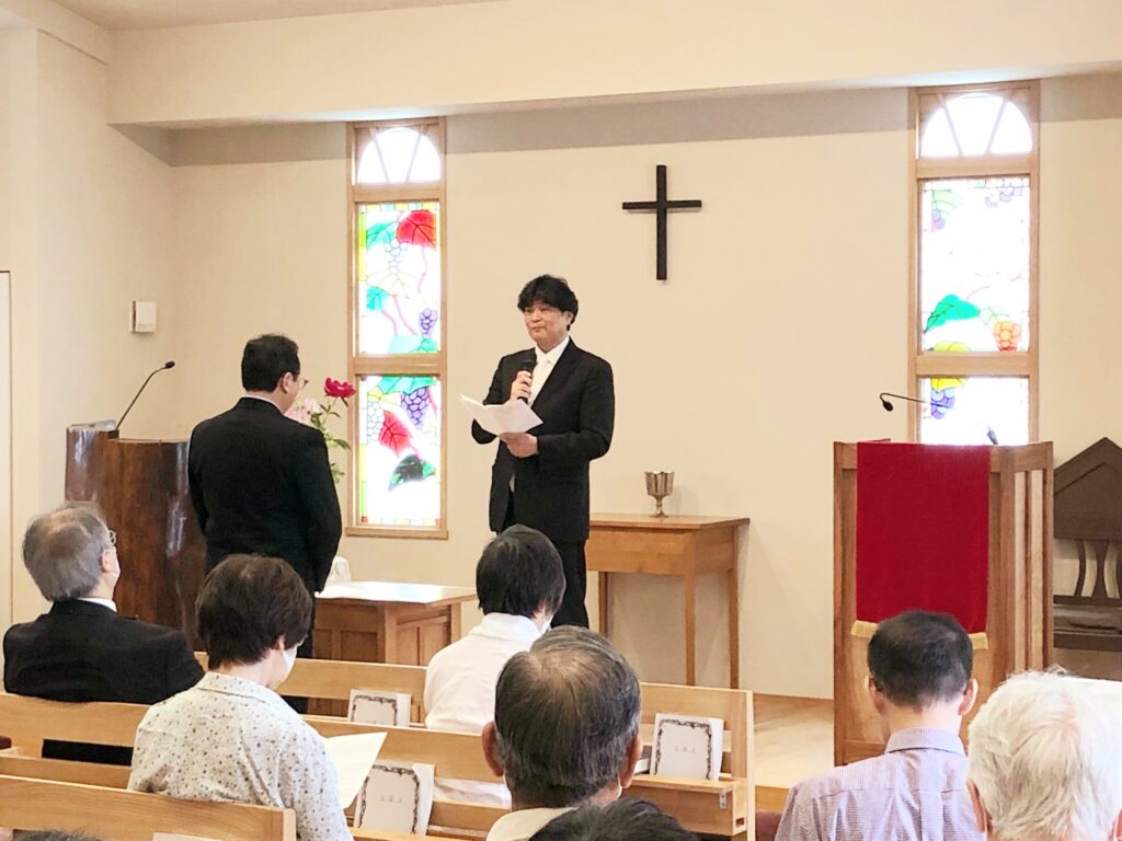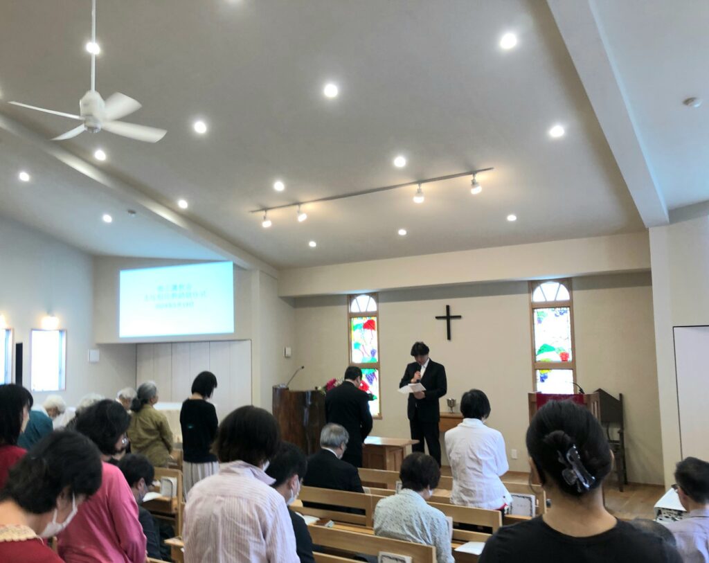 2024年5月19日 / 最終更新日 : 2024年5月21日 mnmmtk ペンテコステ・主任担任教師就任式 ペンテコステ(聖霊降臨日)礼拝、洗礼式、愛餐会が行われ、午後2時から小田哲郎伝道師の主任担任教師就任式が西東京区総会 岩田昌路議長の司式により執り行われました。 そして、西東京教区の教会からたくさんの牧師が出席してくださいました。 教会員が起立し誓約します。