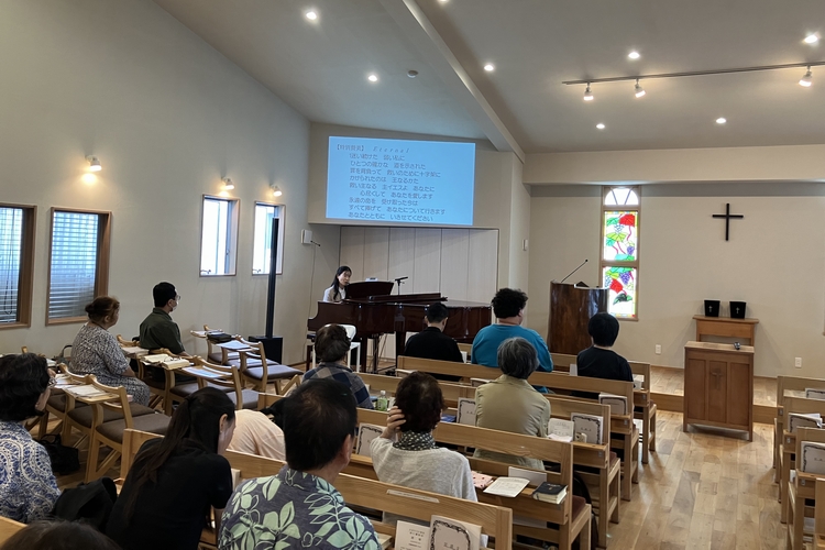 2025年9月14日 / 最終更新日 : 2025年9月27日 mnmmtk 振起日賛美礼拝 本日の主日礼拝は酒巻百合恵神学生に特別賛美と説教をしていただきました。 大人の礼拝に先立ち行われたこどもの教会でも酒巻百合恵神学生をゲストにお招きし、振起日賛美礼拝を捧げました。 主日礼拝では「Eternal」を特別賛美していただきました。 礼拝後、懇談の時を持ちました。