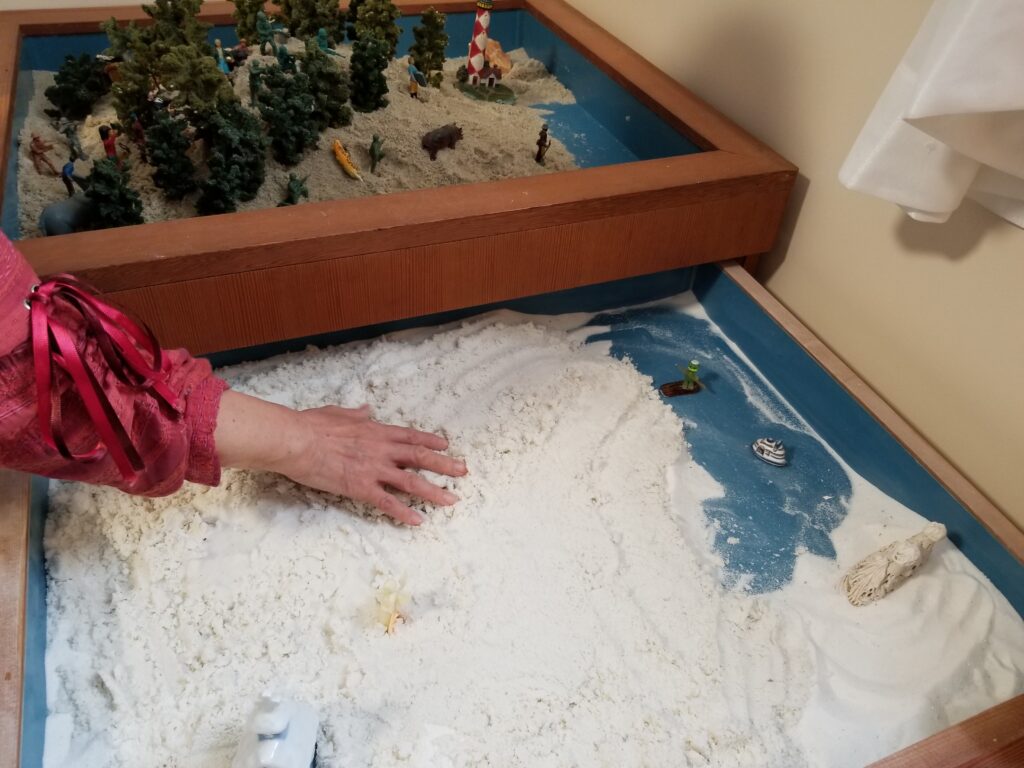 2023年5月14日 / 最終更新日 : 2023年5月14日 mnmmtk 教育相談室の活動紹介 礼拝堂の横に大きな窓で繋がる「親子礼拝室・相談室」では月に一度の土曜日に教育相談室がおこなわれています。きょうは、教会員にその活動が紹介されました。 教育相談では箱庭治療をおこなっています。使用するフィギュア、箱庭の砂を実際に触ってみています。 治療用の砂は普通の砂とは触感が異なり自然とリラックスさせてくれます。