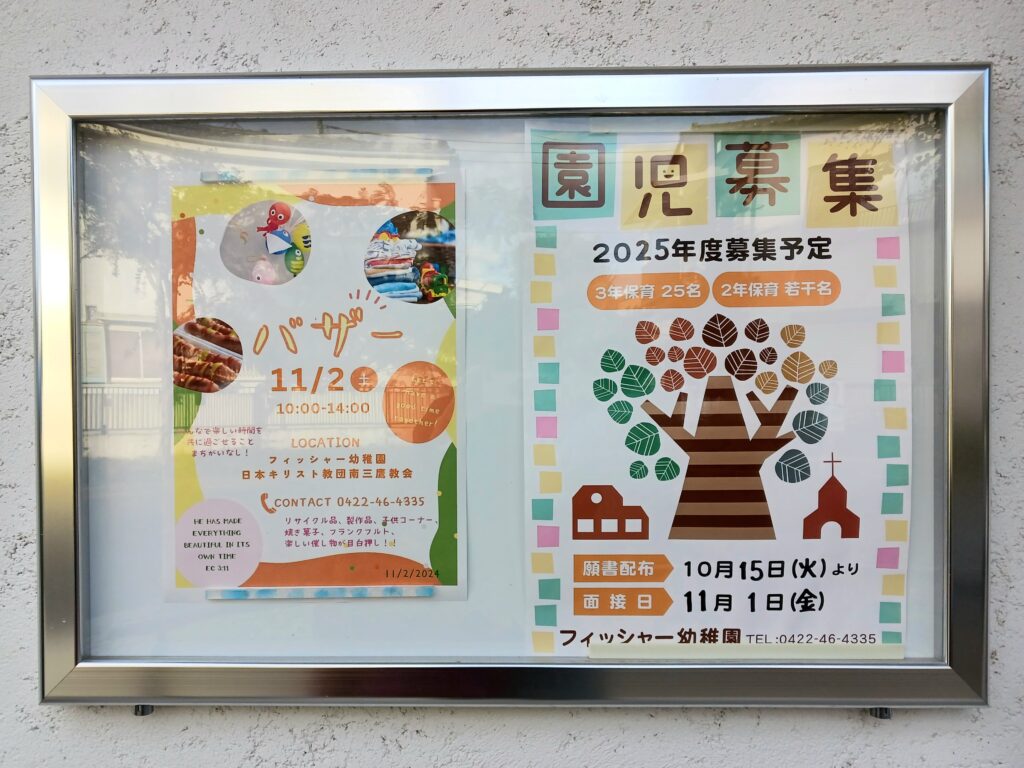 2024年10月30日 / 最終更新日 : 2024年10月30日 mnmmtk 11月2日バザーのお知らせポスター 毎年11月3日開催されてきましたバザーは、曜日の都合で本年度は2日開催です!今年はポスターを掲示して地域のみなさんにお知らせしています。教会と幼稚園が協力しあって準備をすすめてきました。みなさんのご来場をお待ちしています!(当日は上履き・エコバッグをご持参ください)